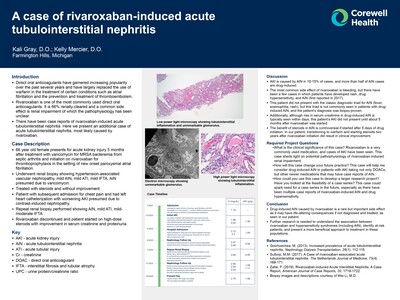 There have been case reports of rivaroxaban-induced acute tubulointerstitial nephritis. Here we present an additional case of acute tubulointerstitial nephritis, most likely caused by rivaroxaban.