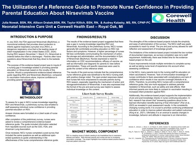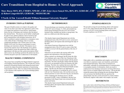 • Implementation of RN and NA Checkpoints to Improve Patient Safety by Dali Majeed, Kristine Heeger, Nancy Vedolich, Nancy Varghese, Rose Karthanal, Sonia San Mateo, Rachel Easton, Kathy Djuravcevic, Susan Abraham, Patricia Navarro-Evanick, Virgina Crile, Merlin Sinjo, Rebekah Arnold, and Nav Singh