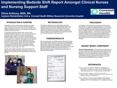 • Implementing Bedside Shift Report Amongst Clinical Nurses and Nursing Support Staff by Olivia Anthony