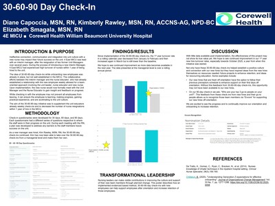 The idea of 30-60-90-day check-ins while onboarding new employees was already in place, but not well established in the MICU. The collaborative efforts between the interim manager and the nurse educator, who had already established a relationship with the new employee weekly allowed for a teamoriented approach involving the unit leader, nurse educator and new nurse. Upon implementation, the new nurse would now formally meet with the Unit Manager and the Nurse Educator to gain insight and feedback on progress.