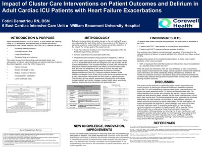 • Impact of Cluster Care Interventions on Patient Outcomes and Delirium in Adult Cardiac ICU Patients with Heart Failure Exacerbations by Fotini Demetriou