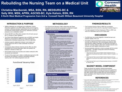 • Rebuilding the Nursing Team on a Medical Unit Part 2: Retention and Recognition by Christina Maciborski, Sally Witt, and Monica Oliveira-Permaloff