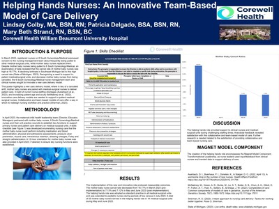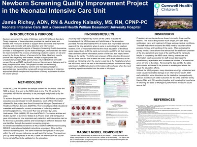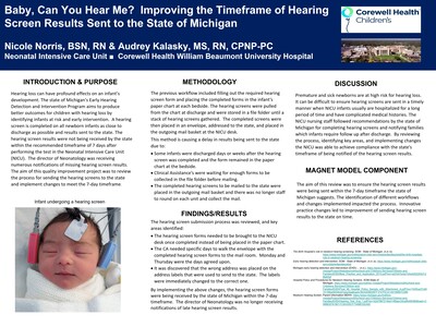 For this project, a mother-baby care Registered Nurse (MBC RN) took initiative to work with the education team to assist with design and implementation of evidence-based education to fellow nurses regarding patients making follow up appointments when hypertension is present/diagnosed/treated during their hospital stay (for delivery). This is a metric that MIAIM desires a level of 80% compliance for patients having follow up appointments on a 3 or 7 day basis, depending on their hypertension diagnosis with or without severe range blood pressure noted during their hospital stay. It has been shown that having these follow up appointments made prior to discharge can decrease poor outcomes or life altering outcomes, for these recently delivered people. Prior to the intervention, the maternal-child care areas were below meeting the metric. This being the driver for this education initiative coming from the nursing standpoint. Nurses are a major source for discharge education on the MBC unit. Hence, being alert to anticipated discharge day, having the patient call the office on a business day to make the follow up appointment before leaving, and educating patients can the importance of this follow up is an example of nursing empowerment.