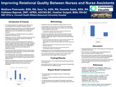 Collaboration between nursing support staff (NSS) and clinical nurses (CNs) is crucial for the provision of safe, personalized, quality care (Beynon et al., 2021). Currently, CNs and NSS on the inpatient rehabilitation (IPR) unit are not required to formally give or receive report from each other.