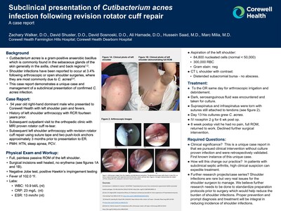 • Subclinical Presentation of Cutibacterium Acnes Infection Following Revision Rotator Cuff Repair: A Case Report by Zachary Walker, David Shuster, David Sosnoski, Ali Hamade, Hussein Saad, and Marc Milia