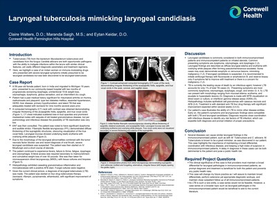• Laryngeal Tuberculosis Mimicking Laryngeal Candidiasis by Claire Walters, Maranda Saigh, and Eytan Keidar