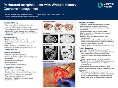 • Perforated Marginal Ulcer with Whipple History Operative Management by Tyler Sauerbeck, Erika Michelin, Logan Smith, and David Fertel